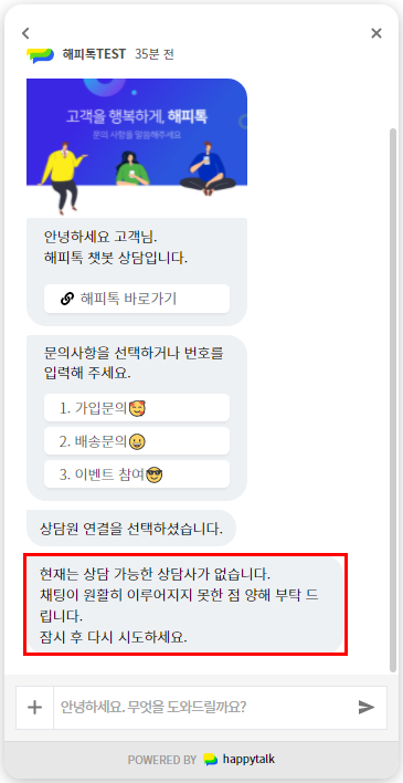 해피톡(웹채팅)은 정보 입력 여부 관계 없이 고객 ID로 표기됩니다.